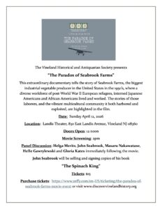 Film: Paradox of Seabrook Farms Paradox Film Flyer + Add to Google Calendar + iCal / Outlook export News Fall 2025 Newsletter History of UF&CWU, Local 56: Fri Nov 22 2024 Go For Broke movie – Nov. 10, 2024 UDT Anniversary Tour: Schools, Churches, Sites Interactive Tour Map for 100th Anniversary UDT John Seabrook: The Prince and The Reporter VISITATION/COLLECTION INTERNSHIPS AVAILABLE Summer 2019 Newsletter Video: C.F. Seabrook Construction Engineer, 1924-1931 2018-2019 Winter Newsletter INTERNSHIPS